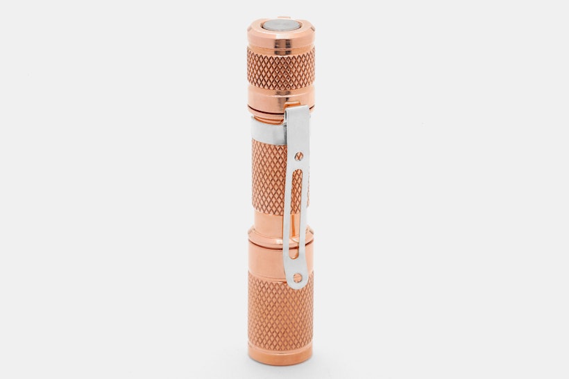 Фонарик  Massdrop Copper AAA -   Новый, в запайке. Покупал на massdrop. Ссылка. Как этот, только медный.  Медный наключник, работает на AAA, аналог Lumintop Tool Ti с тактовой "электронной" кнопкой. Диод Nichia 219C 4000K 90 CRI, low/mid/hi. На литии светит, но не работает кнопка.   ПРОДАН Фонарик ReyLight Copper Pineapple AAA - Медный наключник, работает на AAA/10440, три режима переключаются голововерчением, старт с мунлайта 0,1/0,3 Лм, затем средний 15/170 и макс 125/360 по кругу. Обзор (eng) На литии - "фотовспышка", а на никеле вполне приличные режимы. Диод Nichia 219C 4000K 90 CRI, мятый рефлектор. Установлен тритий 6x1,5мм (синий или зеленый), переставляемая клипса. Новый, идёт не в запайке, а с защитным масляным покрытием. Чтобы появилась патина надо помыть или полирнуть. ПРОДАН Фонарик Jetbeam mini-1 RC 10180 - Медная версия известного стального мини-наключника. В запайке, в подарочной коробочке-сердце. Обработка ближе к матовой - не полировка. [Исправлено: zazara, 10.11.2022 в 19:51] |