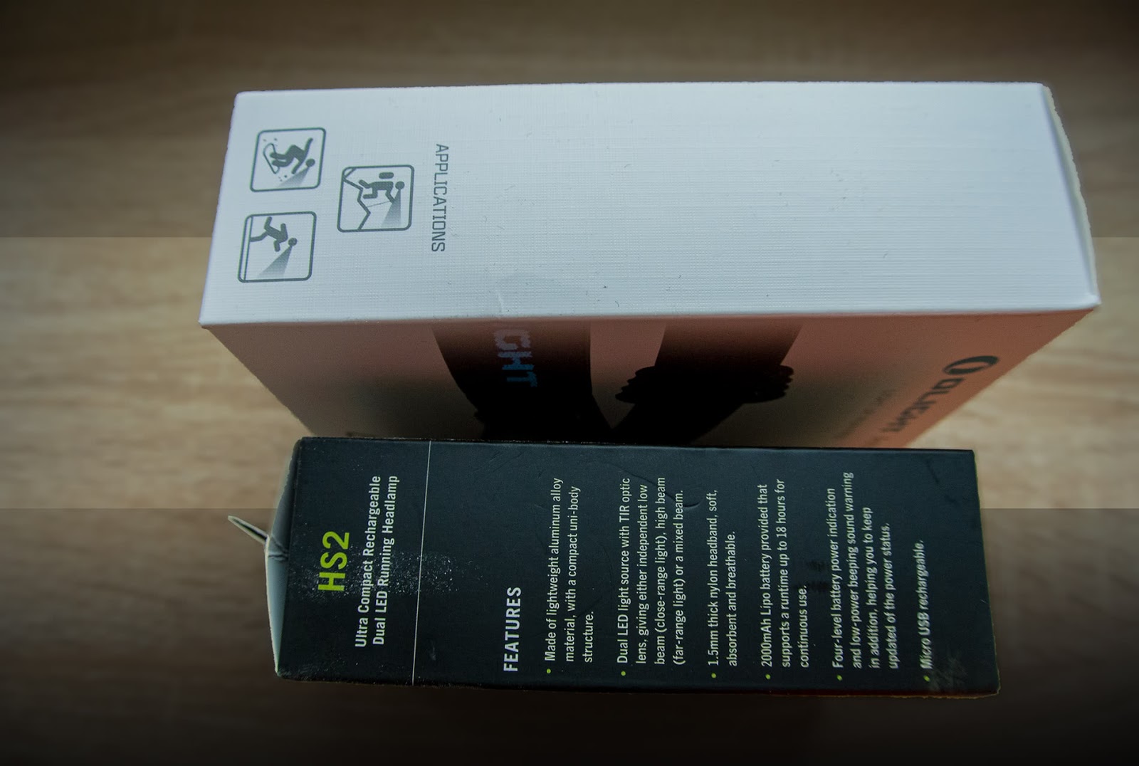 Была еще промежуточная версия H16 (похожая на обзираемый сабж), но видимо она является тупиковой ветвью эволюции (имевшей хоть какой-то успех, только у рыбаков). Если Вы не знакомы с предшественником, вот его обзоры:Чем же прельщал Olight HS2? + Фонарь имел разнесенную конструкцию (головная часть и аккумулятор), которые соединены проводом с кнопкой и разъемом. Такая реализация обеспечила хорошую развесовку с родным АКБ, сверхкомпактность и лёгкость светодиодной головки. + Разрыв в проводе (соединяющем светодиодную головку с АКБ) с разъемом microUSB предоставлял множество дополнительных вариантов запитки налобнго фонаря. + Связка из 2 диодов и двойной ТИР-оптики обеспечивала выбор между ближним (заливным), условно дальним и комбинированными режимами освещения. + Почти полностью стабильный свет. Степдаун практически отсутствовал, что большая редкость в эпоху кило-люмен и супер-пупер-турбо (на несколько секунд).