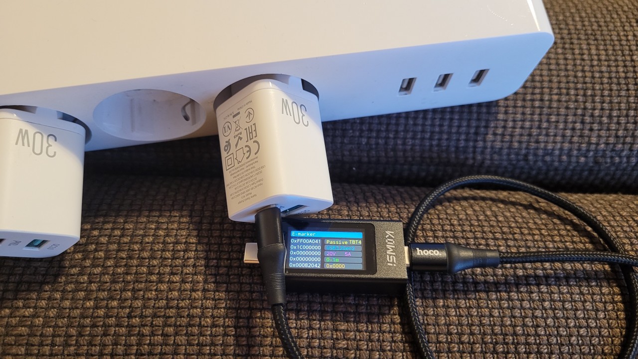 У меня есть зарядка hoco N16 (65w) - прекрасно тянет паяльник и остальные устройства (без каких либо вмешательств), была также более обновленная N49 (65w) - но без изменения настроек по питанию паяльника уходила в защиту. Есть и более слабые hoco n13 по 30w. Более "толстый" orico мне нужен исключительно для того, чтобы подружить док-монитор HP и ноутбук с Thunderbolt 4. Паять таким проводом - упаси боже! Именно поэтому я взял пачку X62. По кабелям: Белый без надписей - тот, что шел в комплекте с N16; Белый с надписью - hoco x62; Черный - hoco X50; Оранжевый - orico. Тут вон человек также не испытал проблем с этим кабелем. https://www.ixbt.com/live/s... |
