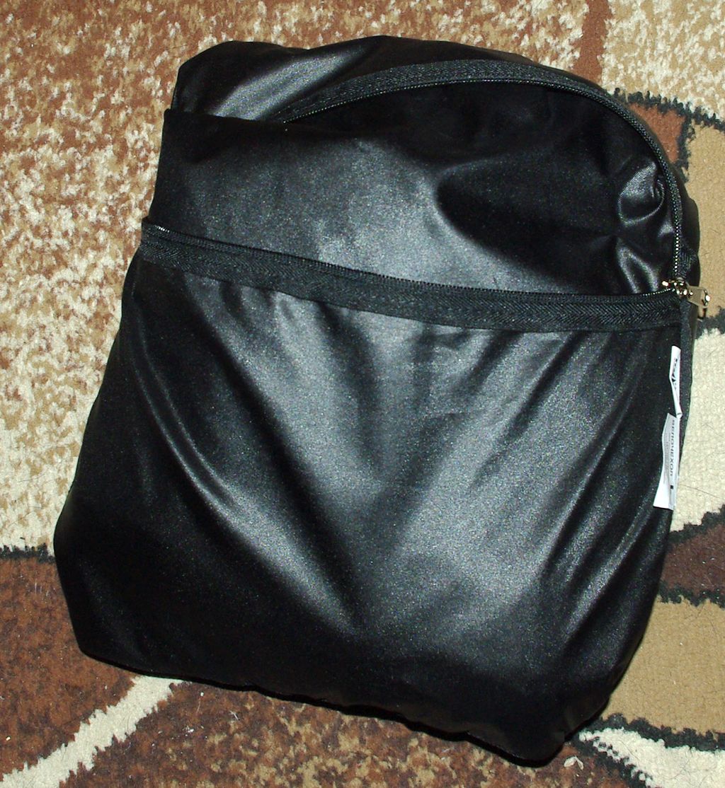 Итак: 1. Выворачиваем чехол внутренней стороной, так что бы карман был наружу а лямки аккуратно складываем внутри и застегиваем ![]() 2. Переворачиваем чехол карманом вниз 3. Складываем чехол поперек его длинной стороны, так, что бы карман остался посередине на обратной стороне ![]() 4. Теперь эту длинную конструкцию складываем вдоль, так, что бы получился сложенный квадрат, с карманом снизу ![]() 5. Теперь принцип действия - карман надо вывернуть наружу обратной стороной (как носки, когда их складываешь). Но такой плотный сверток сразу не полезет внутрь, а потому одну складку можно отвернуть ![]() 6. Теперь выворачиваем карман на оставшуюся сторону ![]() и вставляем отвернутую складку ![]() теперь все это расправляем и застегиваем ![]() И вот наш чехольчик компактно уложен