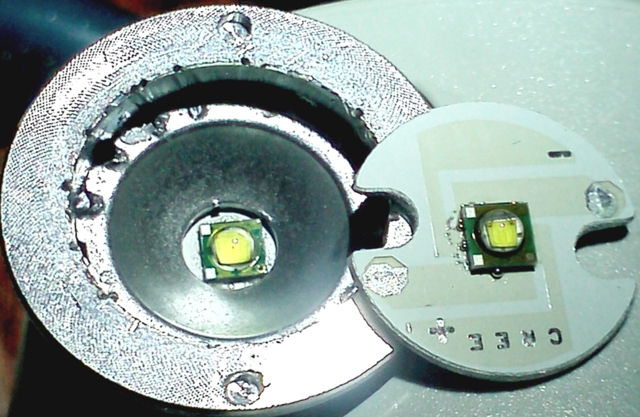 диод скорее всего не ХР-Е, а клон в пластиковом корпусе на 1 ватт. Фото бы побольше!
