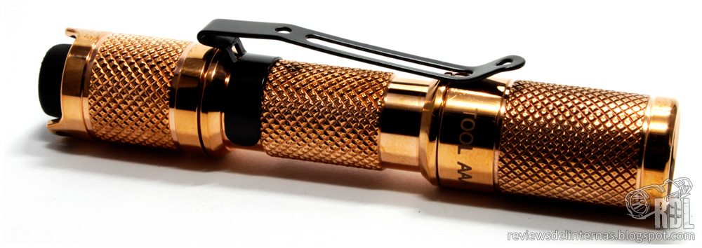 ![]() LUMINTOP TOOL AAA Cooper (Pre-production sample) LED: Nichia 219 NW Battery: 1x AAA Modes: 3 (Low-Med-High) Switch: Reverse in the tailcap. Date: November 2015 http://www.hkequipment.net/... INTRODUCTION: Lumintop is about to launch a special version of its popular Tool AAA, a compact AAA flashlight with a rear clicky, but instead of the typical anodized aluminum finish, the surprise lies in the material used for machining the body of the flashlight, which its copper. It is offered in two versions: Cree XP-G2 R5 for Cool White and Nichia 219B version for Neutral / Warm version. ![]() The Lumintop marketing department contacted RdL blog to provide a pre-production sample for testing and analysis in the form of review, as well as using the review comments to collect opinions and feedback on this unit, so if you have any suggestions or comments you want Lumintop to take into consideration, do not hesitate to leave a reply or comment, since Lumintop will be reading this review to collect your feedback. ![]() Being a fully machined copper flashlight, Lumintop has sent the unit in vacuum-packed foil pouch to protect the metal from premature oxidation. ![]() Inside the protective bag we have the flashlight, which comes fully assembled with the clip installed and with the tip isolated from the body by a small piece of felt that will prevent any scratches during transport. ![]() It is also accompanied with a small plastic box, identical to what can be found in the aluminum version, were we have a small bag with two spare o-rings. Presumably, the presentation of the product once sold will be slightly different. Here you have the pre-PDF version of the user manual. EXTERNAL FINISH: Machining is twin to that found in anodized aluminum version. ![]() ![]() It is a quite compact AAA flashlight incorporating a mechanical switch in the form of reverse clicky in the tailcap, just like other AA or bigger flashlights have. This makes its length somewhat longer than the average for the twisty family flashlights. ![]() The most striking feature of the flashlight is the material that has been machined: copper. Copper is a metal which changes appearance by external factors, developing over time a patina layer, a layer accumulated on the metal due salts produced by the corrosion process. ![]() Of course, fresh out of the bag, lantern shows no sign of this process and shows excellent uniform polished shine. ![]() ![]() Externally the flashlight is dominated by an excellent aggressive knurling, which gives a really excellent grip. ![]() At the base of the head there are two engravings, with brand and logo on one end and the model in the other end. ![]() The optics of the small Tool AAA consists of a Nichia 219A (final production version will have a 219B), perfectly centered in my sample on a small OP reflector. A glass lens with AR treatment and GITD o-ring tops the optical end on a flat bezel. ![]() Inside the head we have direct view of the driver. ![]() The threads are thin and triangular cut, as usual in these small AAA flashlights, and come clean and lightly greased from factory. ![]() The central tube has a small pocket clip preinstalled. The clip can be placed in both directions, but by using the same thread on both ends one can reverse the position of the clip without removing it from its track (just changing tailcap-head), thus avoiding any risk of scratching the flashlight during operation. ![]() The tailcap clicky has a small, reverse type switch. The switch is easily removable by unscrewing through the two slots in the ring that holds the packet from inside. The feel of the switch is good, but maybe a bit stiff or hard when new. ![]() The switch has a silicone coating of black color, that stands quite on the two crenellations of the tailcap, thus precluding the possibility of placing the flashlight in tailstand. USER INTERFACE: The Lumintop Tool AAA has a very simple user interface, with only three intensities. ![]()