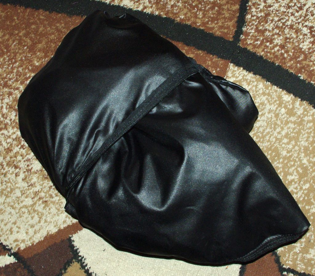 1. Выворачиваем чехол внутренней стороной, так что бы карман был наружу а лямки аккуратно складываем внутри и застегиваем