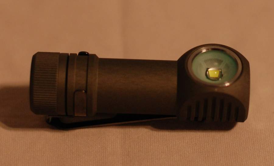Особенность фонаря Zebralight H502 является отсутствие рефлектора, на его месте находится светонакапливающий уплотнитель. За счет этого свет от фонаря становится ровным, без резких световых переходов. Далее немного фотографий фонаря: На следующем фото видно как светится фонарь в темноте: |