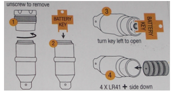 В комплекте 4 батарейки формата LR41 и специальный ключ для их замены.