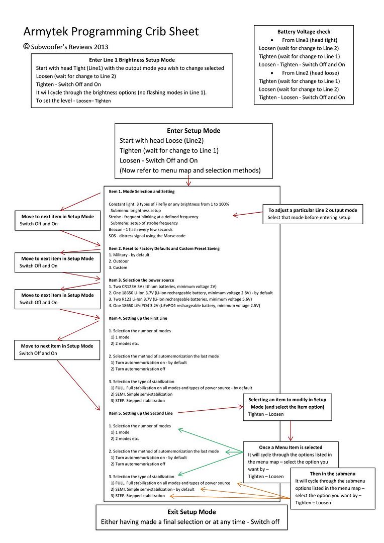 You will still need to consult the ArmyTek instructions for the detail and planning what you want to set up, but hopefully this condensed guide will help you actually carry out the programming.