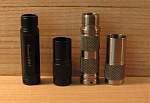 И наконец решил переделать корпус и заодно поменять холодный XP-E на теплого корейца sst-20. Латунная пилюля, корпус титан. Эволюция феникса Родной анодированный корпус в головной части где накатка 14.5 мм в диаметре. Вся остальная часть 14 мм. Длина 76 мм. Новый - головная часть 14.5 мм, тело 12.5, юбка 13. Длина 77 мм. |