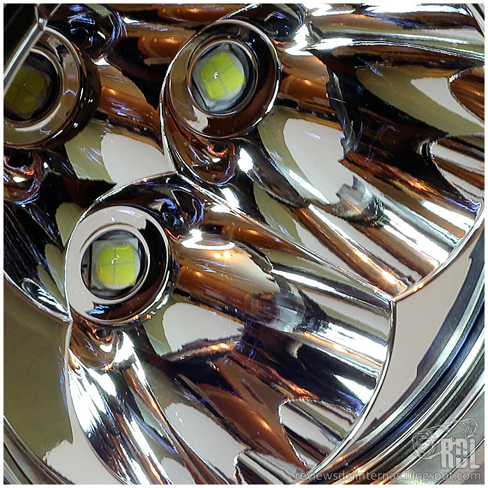 ![]() ![]() BRONTE BT41 LED: 3x CREE XHP70 cw Battery: 4× 18650 Modes: 3 intensities (Low-Med-High) + Strobe. Switch: Double, tailcap and handle. Date: November 2016 INTRODUCTION Bronte, the popular Asian brand, is about to launch a new flashlight, with which will make the jump to the multi-LED and multi-battery high-performance flashlight. It is a triple XHP70, powerful LED emitters able to overcome 4000lm each … ![]() Being a pre-production sample, Bronte has been kind enough to send me a sample to compose this review, but I can’t delve into the details of presentation or contents of the package, but as you can read on the product page flashlight come together a set of replacement o-rings, a key to remove the handle and a user manual. EXTERIOR FINISH The Bronte BT41 is a high performance flashlight, and it shows in their size and weight. ![]() With a maximum diameter of 96mm in his optics, a total length of 190mm and weighing 1015g (~1200g with four 18650 inside), we have a flashlight with considerable dimensions and weight while maintaining a compact and not overly long design. ![]() ![]() Optic end is protected by polished steel crenellated bezel, a glass lens and a huge triple smooth reflector, in which each of the cones overlap slightly with the other. ![]() The huge emitters are slightly offcentered, but given the nature of the beam profile of this flashlight it will hardly affect in practice. ![]() The head is equipped with striking dissipating fins, which also are recessed forming flat spots that prevent the flashlight from rolling if it is deposited on a smooth surface. ![]() The handle has an ergonomic design and is comfortable to hold and operate. Located at the top end we find one of the switches, which is very comfortable to operate due to its natural position. ![]() The handle can be removed easily, you just have to remove an M4 allen screw and pull, since the switch connection is mechanical / magnetic. ![]() The flashlight is anodized black, brilliant. Only two engravings found on the flashlight, both in the central part of the tube, and both very well defined. The central tube has a rectangular knurling finish, quite showy but ineffective to improve the grip of the flashlight. ![]() The tailcap is the only removable part of the BT41. Threads are cut square and shown in crude, clean and lightly oiled finish. ![]() ![]() The battery holder has a robust construction with really thick (perhaps too) springs. The cartridge is designed to work seamlessly with button and flat top batteries, and space is sufficient to accommodate abnormally long protected batteries, although the robustness / inflexibility of the springs latter require some force to be accommodated / withdrawn. The cartridge has a 4S1P configuration, so with fully charged batteries have 16.8V. ![]() Inside, contacts between the flashlight and the battery holder are made cleanly, with no visible springs. Both positive and negative contacts are made at the same end, so it is indifferent the orientation of the cartridge at the time of insertion. The tailcap, even having at the base a second switch, allows to place the light in tailstanding in a stable way. USER INTERFACE This Bronte BT41 has a fairly simple interface, with only three intensities and a hidden strobe mode. The use of a double switch is due to the possibility of removing the handle if we wish, but both switches operate identically. ![]() ![]()