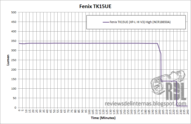 ![]() (All measurements are taken following the procedure ANSI NEMA FL1, taking as value the highest reading of between 30 and 120 seconds after activation. More details here.) Once again, we can see how all the effort put into the calibration of the sphere and the exclusive use of flashlights from this brand to obtain the starting values shows us an extreme agreement between what the manufacturer specifies and what we can measure by ourselves. The distribution of modes is, in my opinion, very nicely set up. PERFORMANCE Apparently, the latest models of Fenix incorporate a new feature that comes to supplant the previous trend of time controlled stepdown… ![]() Instead, Fenix now incorporates for its maximum performance mode a thermal management system that will try to maintain maximum output as long as the temperature allows it. In the test, assisted as usual by a small fan, the flashlight has been able to maintain itself without doing the stepdown for almost 90 minutes, at which time presumably the voltage was insufficient and the flashlight went straight to the Medium mode, and then down again to the Low mode and remain on after two hours of uninterrupted use. ![]() The high mode shows a linear performance, as we were accustomed to date, with a battery power management identical to the one we have seen in the last two stepdowns of Turbo mode. ![]() Compared with other similar flashlights, the TK15UE is the only one I have tested that does not make a drastic drop after a few minutes of uninterrupted use, and even equals or even surpasses other alternatives thanks to a better efficiency, among other things, the use of a much more modern LED emitter. EFFICIENCY ![]() (More details of how this calculation was made here.) The use of the new thermal management plays against the efficiency of the Fenix, since as it happens with the PD32 and its management of the modes by time, it manages to obtain a calculation (to 10% of the ANSI) almost insuperable for being the greater part of the time in a much more efficient output range due the drastically stepdown action. Even so, the TK15UE gets a not inconsiderable result, especially considering the shape of the line that its runtime draws in the previous section charts. BEAM PROFILE The XP-L HI, even with a reflector of small dimensions, is able to offer a very clear and sharp projection, going from the 250 meters of the XP-G S2 version to no less than 325 meters with this XP- L HI V3. ![]() ![]() ![]() ![]() The beam profile shows a well-defined central hotspot, with a homogeneous perimeter spill light free of dark artifacts or rings. ![]() ![]() The tint is more than acceptable for a cool white. There is no presence of the typical greenish tone that surrounds the hotspot. ![]() ![]() ![]() ![]() ![]() ![]() PERSONAL CONCLUSION I’ve always been a big fan of classic design TK Fenix (you just have to look closely my blog’s logo…), and this TK15 Ultimate Edition in not exception, not only for its technical characteristics, but especially for its continuist design but with that special touch that gives the special anodizing in another color. ![]() ![]() Fenix TK22 · Fenix TK12 · Nitecore P20UV · Fenix TK15UE · Fenix TK22 Gray Ed · Rayus PT11 · Nitecore P25 Negatives: As downside I’ll say that, although I understand why, I would have preferred a tailcap design which allow placing the flashlight in tailstand, as Fenix has done the TK12 (now renamed as TK09). Also I’d like if Fenix would offer more neutral tints in more models. Positives: To the usual strong points of the Fenix brand, build quality, proven strength and confidence, this TK15UE adds a different, original exterior color appearance that sometimes we miss among the novelties of the big brands. A simple user interface, easy to understand with four well-spaced modes and a new and interesting thermal management that is sure to be appreciated on the long dark nights of upcoming winter. |