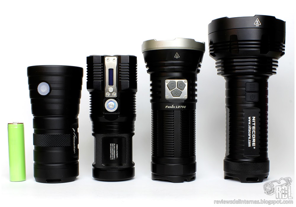 ![]() NITECORE TM28 LED: 4x CREE XHP35 HI CW Battery: 4× 18650 Modes: 5 intensities, 3 hidden strobes. Switch: Digital, head. Date: January 2017 INTRODUCTION Nitecore’s Tiny Monster range has just taken on a new member in the monstrous family with the new TM28. This is a natural evolution of the TM26, only now with the power of the new generation of CREE LED emitters, in this case four impressive XHP35 HI. ![]() The flashlight comes in a cardboard box in which perfectly housed inside you will find besides the impressive flashlight, which comes inserted in its textile holster, a power adapter, a wrist strap, a spare o-ring, a spare charge port rubber cover and a flat top battery adapter that we’ll talk about later. Of course, we cannot forget the usual documentation, including a well detailed user manual in english. ![]() The case has a velcro opening that allows the flashlight to be housed with the head upwards, and is open underneath allowing to use it with a longer battery pack compatible with the TM28. ![]() EXTERIOR FINISH The external design of the TM28 is exactly the same as it can be found in a TM26 or in its long-range version, the TM26GT. ![]() ![]() We are talking about a relatively compact multi-emitter flashlight, which is powered by four 18650, and has four completely independent optics. ![]() ![]() Another of its very own features, inherited directly from the TM26, is the small OLED display located just above the digital switch, with “two stage” system and blue backlight already seen in other models of the brand. ![]() The four independent optics have a clean and unpolluted finish. We found the four XHP35 HI perfectly centered on their respective smooth reflectors. Glass lenses have the typical violet / lilac halo so characteristic of anti-reflective treatment. The bezels are smooth, in steel with matte finish. ![]() The XHP35 HI features a black centering mechanism. ![]() The switch, called “two stage” and patented by the brand, is located on one side of the head, next to the small display. The design of the switch, and especially its backlight function makes it really easy to locate in the dark. The display also has a small switch that will serve to toggle the information displayed on the screen. ![]() On the opposite side, we find a standard thread for tripod and next to it, protected by a silicone cover, a charging port with barrel type connector. ![]() The power adapter, in my case with EU type, supplies the flashlight 12V / 1A for its charging function. ![]() The threads come well lubricated. They are also anodized, so it is possible to lock the flashlight mechanically. ![]() In the interior of the battery container we find a double flat spring system per battery, eliminating the “high resistance” classic spring issues. We can see how there are also adhesives warning of the correct placement of the batteries. ![]() Nitecore has provided me with a set of four IMR batteries that are designed specifically for the TM28. They are safe chemical batteries and capable of delivering high discharge rates, with a declared capacity of 3100mAh, and with a protection circuit against overload and over discharge. ![]() As a result of this circuit, the battery is about 3 ~ 4mm longer than it would be an unprotected cell, so it is now where the adapter for flat top batteries included as an original accessory comes into action. ![]() This adapter, in addition to supplementing those missing millimeters in batteries without protection circuits, allowes the positive poles of the cells to make contact with the driver disk in a very simple way. ![]() The hole for the wrist strap is located near the base of the flashlight. The base design allows to place the flashlight in solid tailstand. USER INTERFACE The TM28 has a rich and complete user interface, very similar to that found in other TM range flashlights. The main modes are divided into two groups, one for “daily” use (Daily mode) and one reserved for the higher performance modes (Search mode). It also has a handful of very useful features such as an electronic lock out or in display information management. ![]()