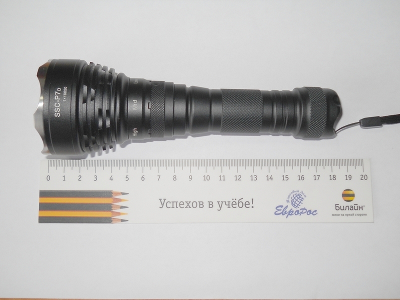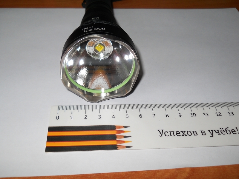 Фонарь UltraFire UF-860L , пришел в «пупырчатом» целлофановом пакете. Первое впечатление : ого, солидный фонарь, тяжёлый-взвесил-300гр показал китайский дигитальный безмен. Купил я его из-за магнитного кольцевого переключателя и 3-х режимов - мне не нравятся всякие стробы/мигалки. Управление фонарём осуществляется с помощью кнопки (обратный клик) в хвосте и как было уже сказано, магнитного кольца выбора режима возле головы. При обычном хвате большой палец ложится не на управляющее кольцо, а на утолщение ближе к голове - таким образом, случайно повернуть его затруднительно. Этакая защита от случайного переключения. Под стеклом находится резиновое светящееся кольцо. Противоскаточных нарезов нет - фонарь легко катается по поверхности. Надписи сделаны с помощью лазерной гравировки и краски. Корпус анодирован , матовый, чёрный, класс анодирования я определить не могу. Для сравнения размеров сделал фото рядом со SpiderFire ( народным веломанским на SSCP7). Со стороны положительного контакта аккумулятора имеется мех. защита от переполюсовки. Включил, попереключал режимы. Кольцо ходит с небольшим «песком» , в районе мощностных отметок фиксируется с лёгким щелчком. При нахождении индикаторной метки селектора между ними фонарь гаснет. В среднем и минимальном режиме присутствует заметное глазу мерцание (махал фонарём , глядя сбоку на отражатель). Световое пятно представляет собой широкую засветку с довольно-таки резким переходом в спот (как эта часть называется посмотрел в глоссарии). В центре небольшой « провал». При приближении фонаря к стене на 20-25 см « провал» явно выражается в тёмный крест-результат работы 4-х кристаллов диода. Может, при применении диода с «мутной» линзой этот эффект был бы менее заметен. Цитата: