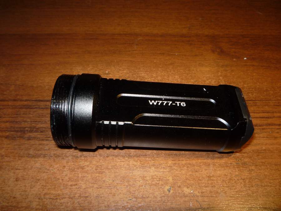 Модель: W777-T6 Источник света: Cree XM-L Цветовая температура: холодный белый Оптика: Рефлектор, гладкий, диаметр 35 мм. Питание: 2х18650 Режимы/яркость: 4 яркости, СОС и строб. До 700 люменов, 3% - 11% - 49% - 100%. Включение и смена режимов: Две кнопки на торце. Силовая прямого клика для включения, тактовая для смены режимов, без памяти. Время работы: Требует измерения. Масса и габариты: 235 граммов пустой, 330 с двумя 18650. Общая длина 162 мм, диаметр головы 52÷48 мм, обхват прямоугольной части 45х26.5 мм. Цена: 42.5$ Страна изготовления: Китай Внезапно, первый мой фонарь на XM-L и первый приличный фонарь на двух 18650. Мощный карманный фонарь я хотел завести давно, но мне пока вполне хватало P-Rocket на нейтральном XP-G, и менять его на что-то сравнимой яркости или гораздо более крупное не хотелось. Фонари с параллельным расположением двух 18650 меня же интересовали и раньше, но M3C4 меня смущал невнятным кольцом, а TK35 холодным светом, который за приличные деньги и с сомнительной возможностью заменить светодиод мне не хотелось. Когда китайцы сделали клон TK35 за весьма скромное бабло, с приличным интерфейсом и возможностью лёгкого тюнинга, я таки решился и сделал заказ. С заказом получилось весело, Каи вместо фонаря положили в конверт набор "сделай сам" - три драйвера и два аккумулятора. После короткой и скучной переписки вопрос решился положительно, 8 декабря пакет был отправлен, а 29, то есть сегодня, я его уже забрал на почте. Спасибо местным почтовым тётенькам, которые героически разобрали новогодние завалы. Фонарь получен, распакован, уже опробован и радует. Принцесса Селестия говорит нам, что радостью надо делиться с друзьями, что я сейчас и буду делать. Упаковка и комплектация. Обычный жёлтый конверт, в конверте коробочка без опознавательных знаков, в коробочке завёрнутый в пупырчатый пакетик фонарь. Здесь ничего интересного и ничего лишнего, и спасибо что нужное приехало. Эргономика и размеры. Фонарь по сравнению с "обычными" фонарями довольно крупный и увестый. Но заметно компактнее "крупных" фонарей вроде маглайтов и обычных вантузов на двух 18650 последовательно. Для кармана штанов слишком велик, но в карман куртки помешается хорошо, что от него и требуется. Фонарь явно предназначен для того, чтобы егодержать обратным хватом. При этом массивная голова полностью открыта, прямоугольная часть корпуса лежит на ладони и прижимается четырьмя пальцами, а кнопки находятся под большим пальцем. Обхватить корпус поплотнее можно, но с моей немаленькой ладонью грани утолщённого хвоста начинают впиваться в палец. Длина прямоугольной части от хвоста до расширения у головы всего 80 мм, людям с узкими ладонями и длинными пальцами фонарь будет удобнее. Но это явное следствие из выбранного питания и компоновки. Расширения у головы и кнопок позвляют плотно держать фонарь даже четырьмя пальцами, несмотря на отсутствие накатки и рёбер, кроме трёх декоративных проточек под мизинцем. И всё же рёбра по краям рукояти совсем не мешало бы скруглить напильником. Кнопки по размеру почти не отличаются, нажимать их одинаково удобно, держа фонарь любой стороной. На ощупь силовая более крупная и шершавая, потому её можно отличить даже в темноте, но только голыми руками и с некоторым вниманием. Если фонарь от одной кнопки не включился, значит надо нажимать на другую. На хвосте фонарь стоит неустойчиво. По сторонам