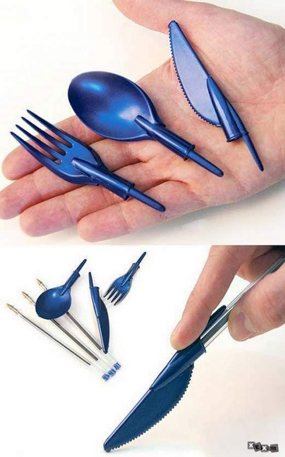 Я с собой часто ношу складные ложку и вилку, в походах зачастую приходится питаться почти на ходу, а есть из консервов ножом не очень то удобно.